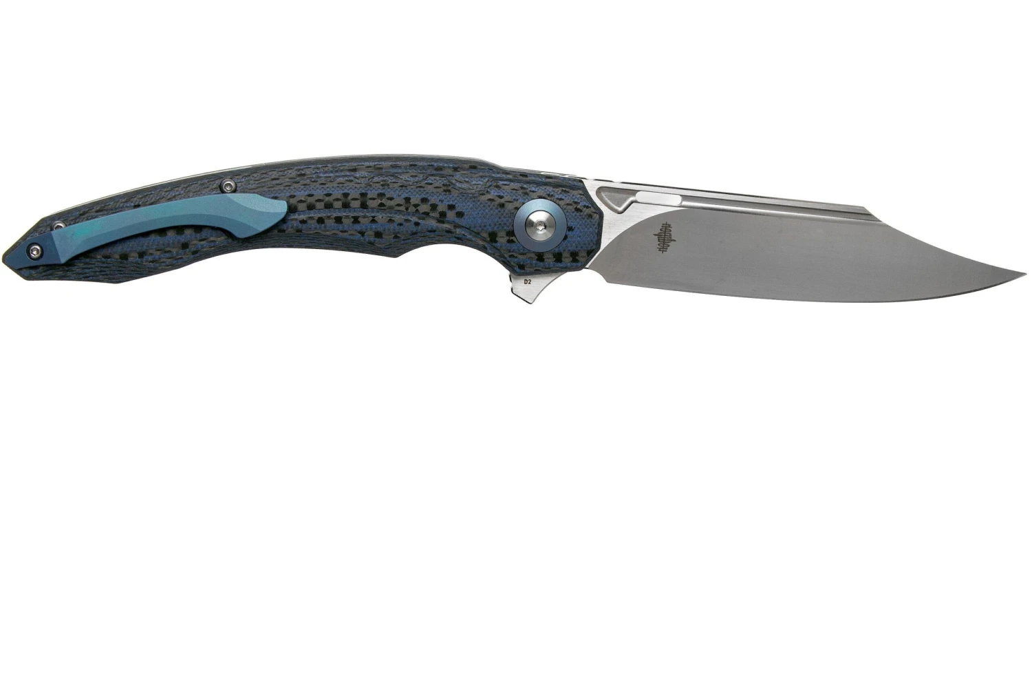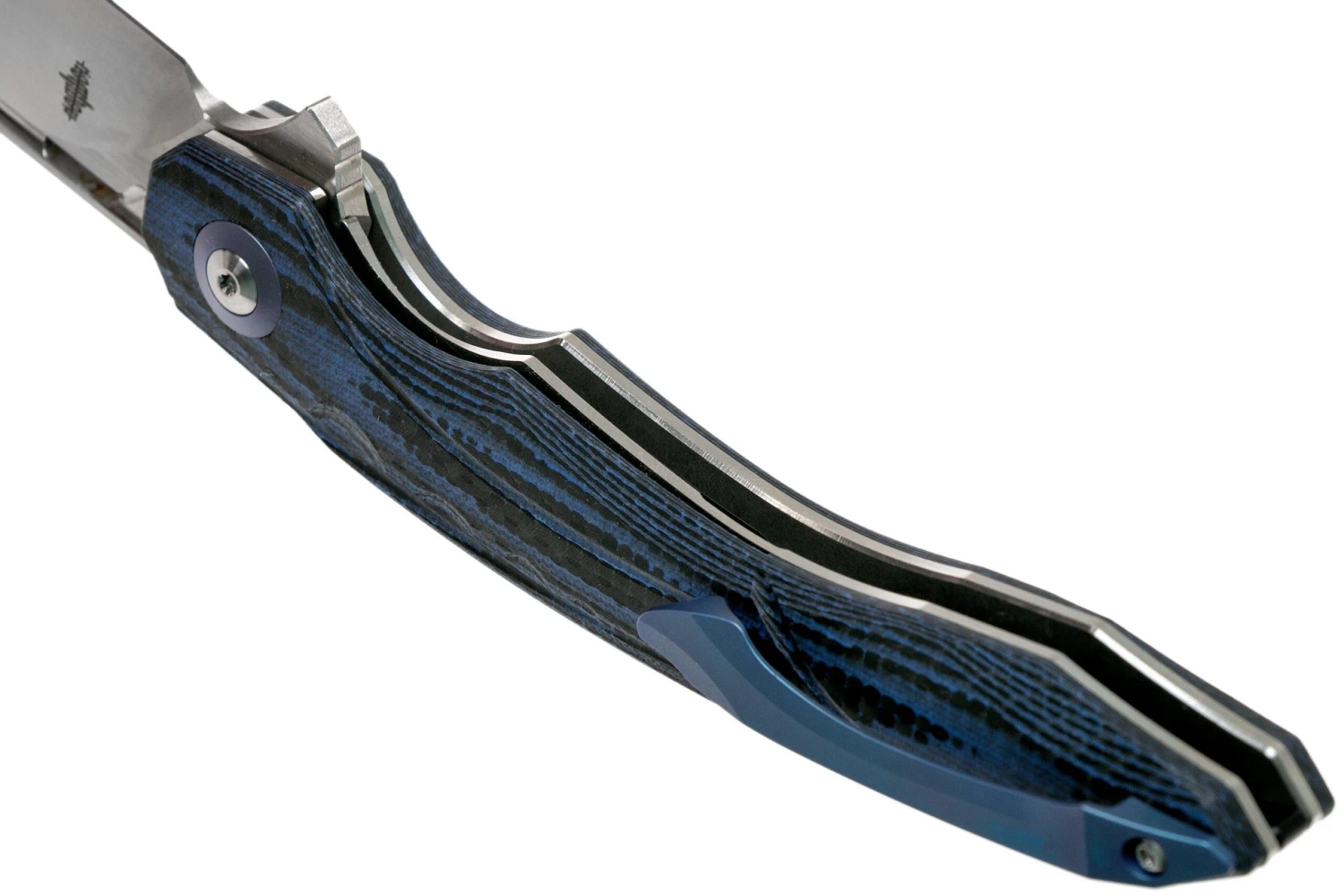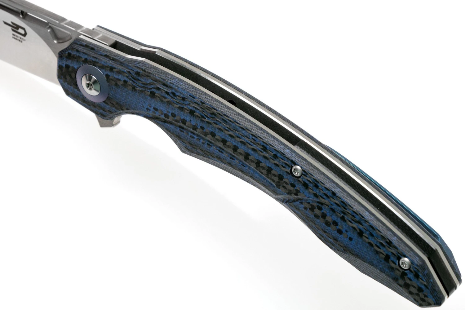 Le Bestech Fanga BG18 est un couteau de poche très cool à un prix attractif. Avec une lame de 10 cm, il joue dans la cours des grands mais il reste très léger avec seulement 135 grammes. Le manche de ce Bestech Fanga est très particulier. Il est fait de G10 et de fibre de carbone. Souvent, on observe une couche inférieure et une couche supérieure en fibre de carbone mais dans ce cas, les différentes couches alternent fibre de carbone et G10. Un effet très cool qui ressemble presque à l’acier damassé. Le tout associé au design déjà excentrique du Fanga. Un couteau très cool donc à un prix vraiment intéressant.