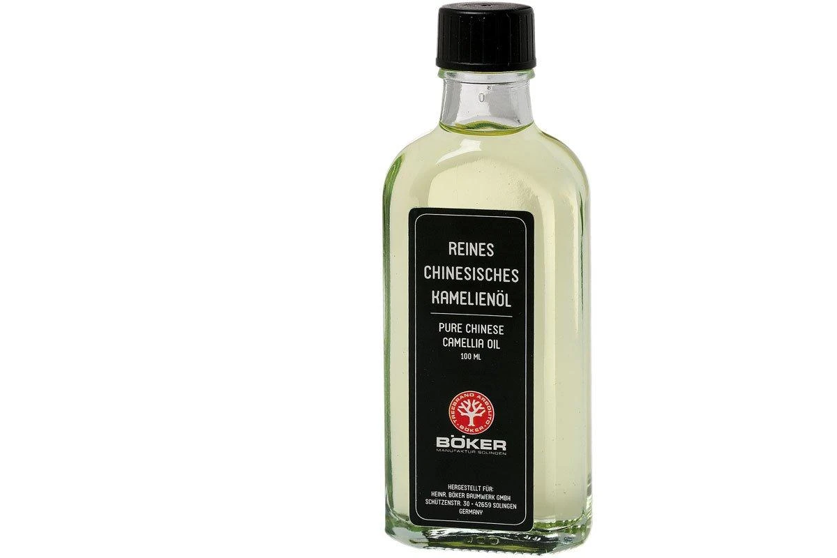 Cette huile de Camélia pure Böker est idéale pour entretenir les manches de couteaux en acier carbone ou en bois. Au Japon, cette huile est déjà utilisée depuis des siècles. Il s’agit d’une huile fine qui protège contre la rouille. L’avantage est qu’elle ne sèche jamais et est inodore. Lorsque vous utilisez l’huile de Camélia sur un manche en bois, vous voyez qu’elle s’incruste dans le bois et met en valeur ses motifs. Cette huile est livrée dans une bouteille en verre de 100 ml. L’huile elle-même vient de Chine et est d’une qualité pure.