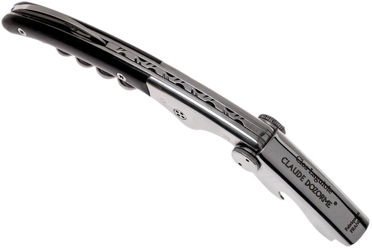 Ce couteau sommelier Claude Dozorme Clos Laguiole est un luxueux accessoire pour le vin au style Laguiole. Parachevé à la main à Thiers, selon la tradition coutellière française. L’abeille sur l’un des côtés du manche indique tout de suite qu’il s’agit d’un Laguiole. Le ressort arrière en témoigne également. Il a été limé à la main par un artisan français. Un travail extrêmement minutieux.