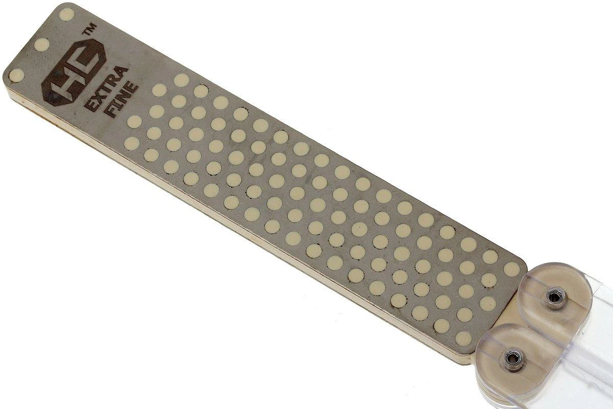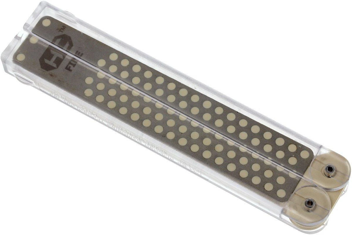 Une pierre à aiguiser Diafold est construite comme un couteau papillon, le manche se replie sur la pierre à aiguiser diamant. La pierre est ainsi parfaitement protégée. Les pierres peuvent être utilisées des deux côtés, chaque face ayant sa propre granulométrie.