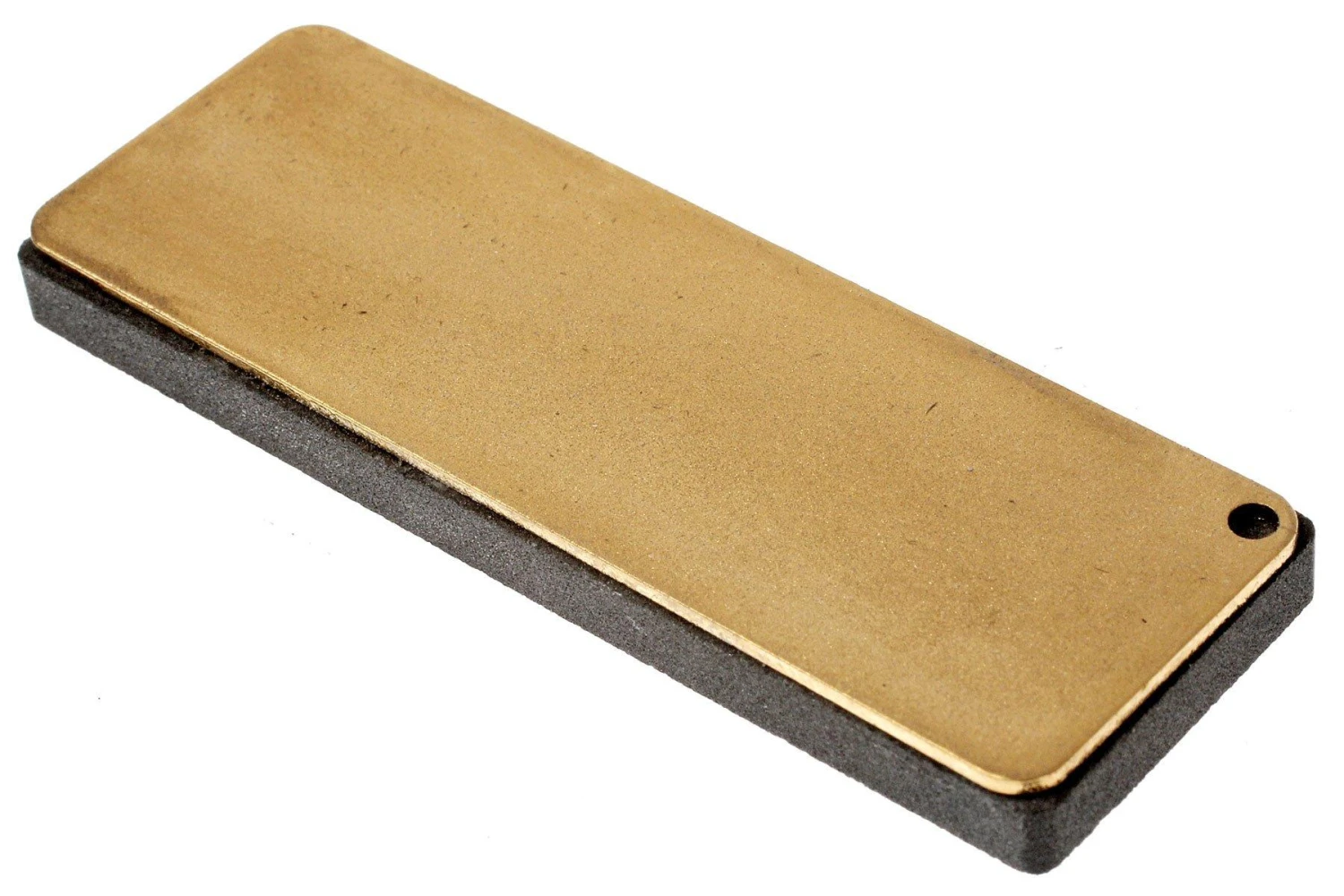 Pierre combinée composée de poudre de diamant (25 microns) et de céramique (saphir synthétique). Grâce à ces matériaux, la surface de la pierre reste plane. Ces matériaux très durs permettent d’affûter même les couteaux en acier poudré ultra dur. On peut utiliser cette pierre sans la mouiller. Il faut cependant la nettoyer de temps en temps avec de l’eau chaude et du savon liquide doux. Au début, cette pierre peut présenter un aspect un peu rugueux, mais elle deviendra plus lisse à force d’être utilisée. Étui en cuir inclus.