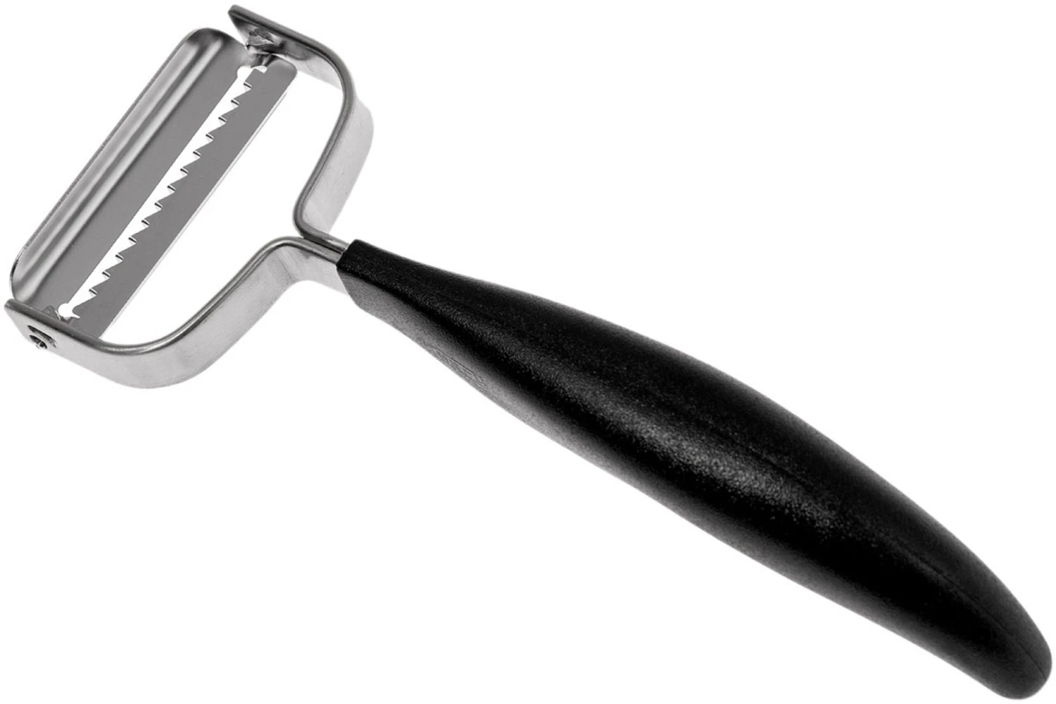 Grâce à cet éplucheur julienne GEFU Striscia, il est facile de peler même les fruits et légumes longs comme les concombres, courgettes et autres carottes, finement et en toute sécurité. Réalisez de fines longues bandes de légumes et de fruits, pour une salade ou décorer un plat. L’ouverture très étroite permet de prélever la peau finement. La lame du dessous est bien fine. Elle permet d’éviter que la chair reste collée à la lame. On peut aussi s’en servir pour couper finement et aisément des écorces d’agrumes. La lame est en acier résistant à la corrosion. Le manche en plastique tient parfaitement en main. Très hygiénique.