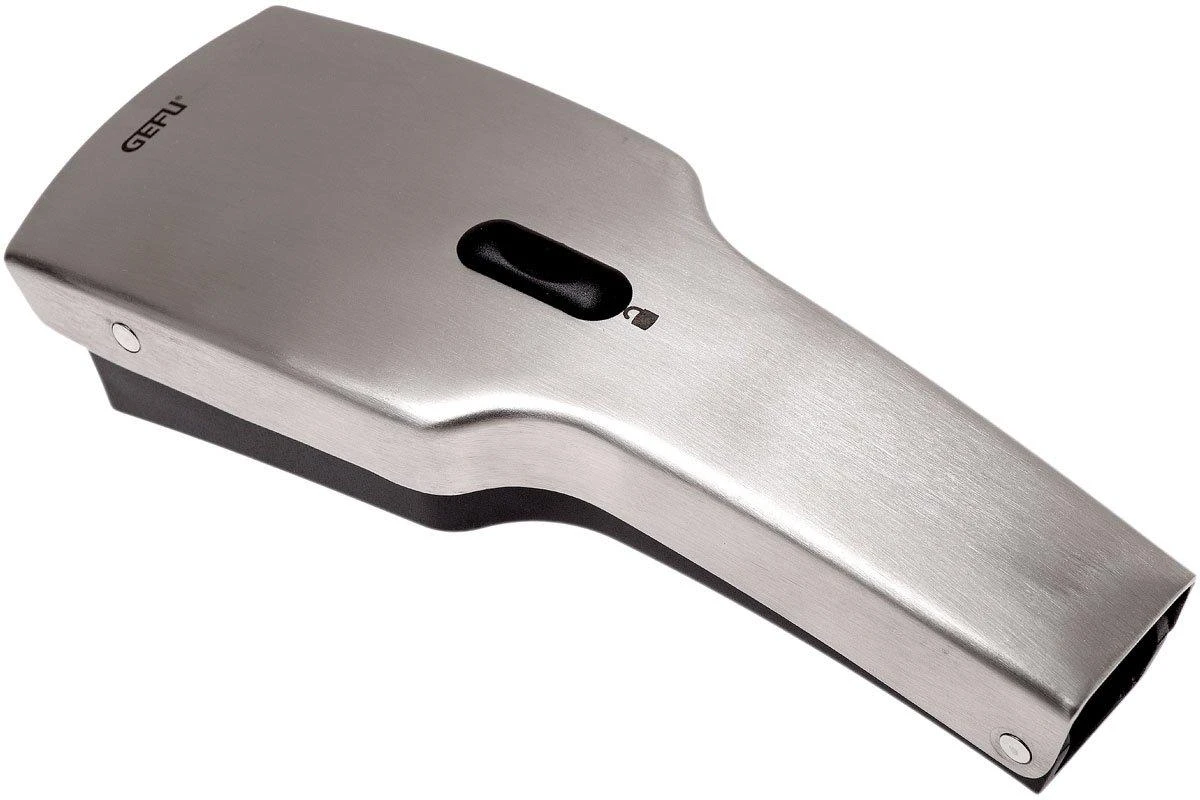 Avec le GEFU Tari, couper les ingrédients devient un jeu d’enfant. Réalisez des tranches parfaites de 5 mm. Rapidement et en toute sécurité. Il convient pour tous les légumes et fruits tendres, tels que les fraises et les raisins, les kiwis mais aussi pour les œufs et la mozzarella. Il ne convient pas aux pommes de terre crues, ni aux oignons, carottes et autres ingrédients durs. Les lames japonaises dentelées sont tranchantes, solides et inoxydables. Autre avantage : ce trancheur se range de façon compacte et sûre grâce à un système de verrouillage pratique. Il suffit de déplier la lame pour la nettoyer. Que ce soit à la main ou au lave-vaisselle.