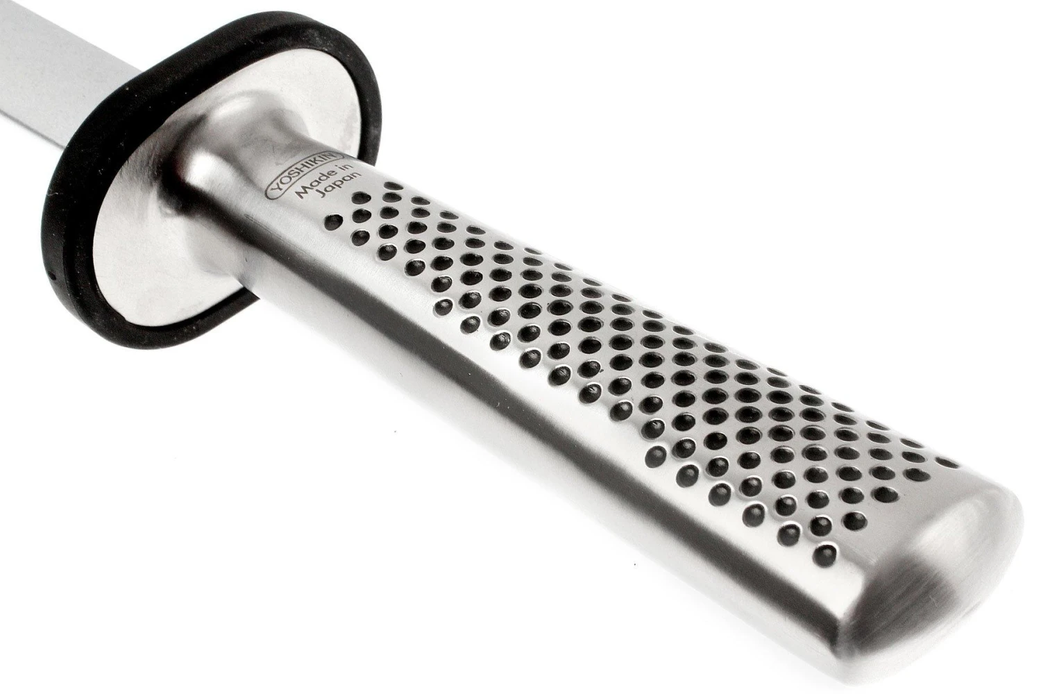 La tige de ce fusil en métal est entièrement recouverte de fine poudre de diamant industriel. Cela garantit une élimination rapide du métal et ainsi un tranchant à nouveau rasoir en un temps record.