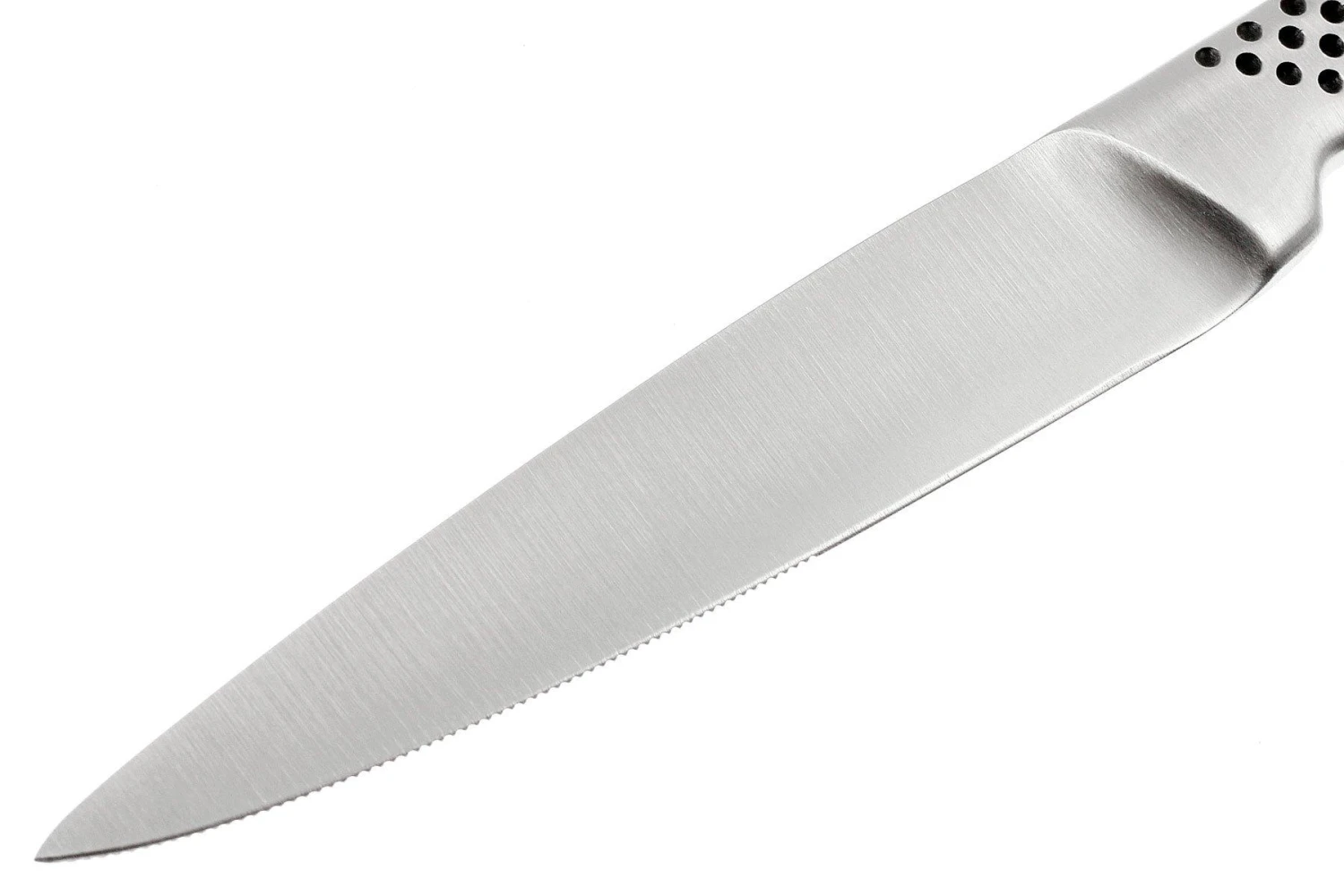 Le couteau à steak Global GSF-23 est pourvu de petites dentelures sur la lame. Cela permet de conserver plus longtemps son tranchant. Le manche est étroit et agréable en main. Le couteau est très maniable, grâce à ses dimensions relativement petites.