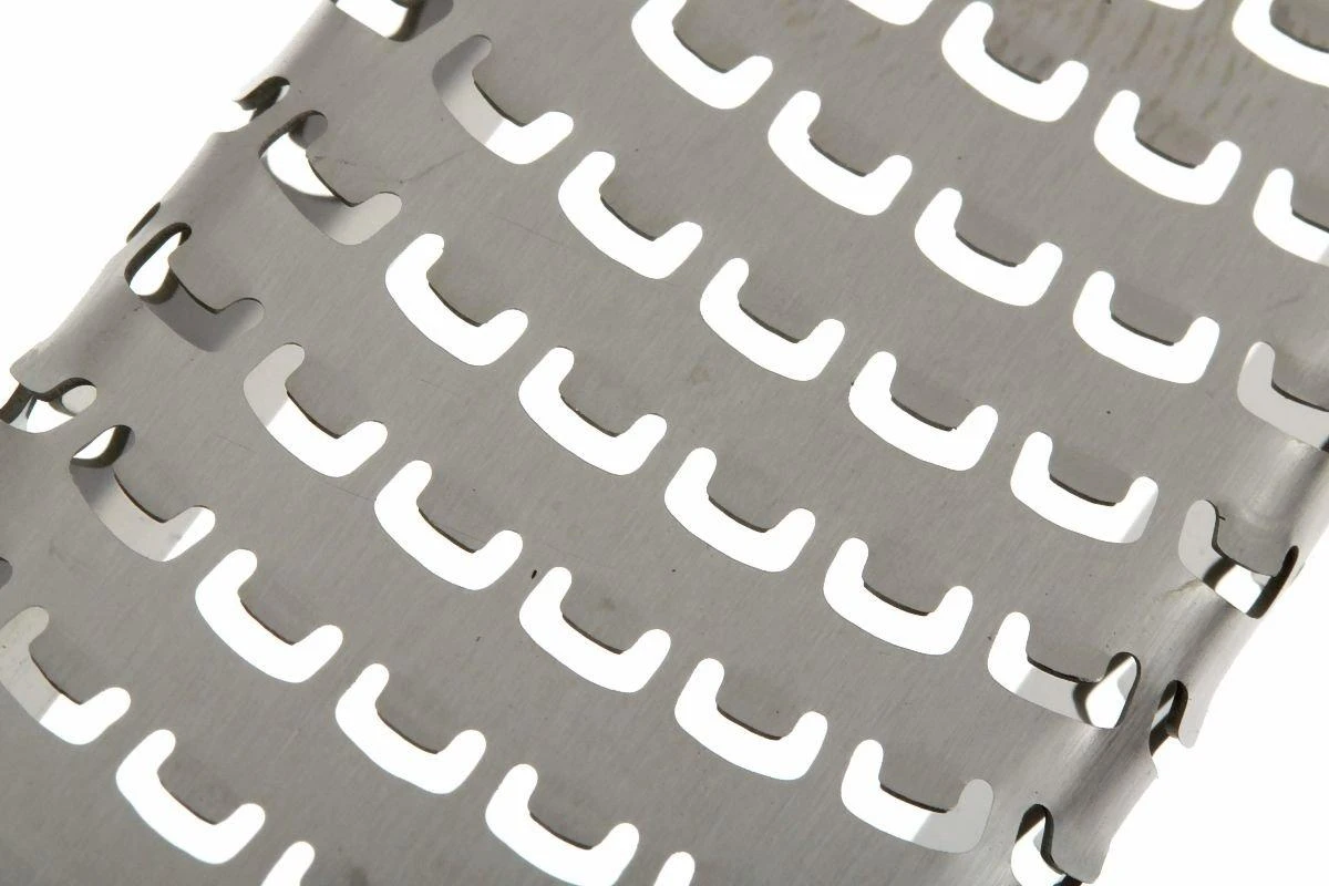 La râpe Microplane Premium Classic est un accessoire fin, pratique et très durable pour votre cuisine. Elle est faite d’acier inoxydable solide et est dotée d’un étui de protection. Cette râpe Premium est dotée d’un manche au toucher doux, offrant une excellente prise en main. Elle est également équipée de deux pieds en caoutchouc antidérapant. Très pratique lorsque l’on râpe un aliment à plat sur le plan de travail.