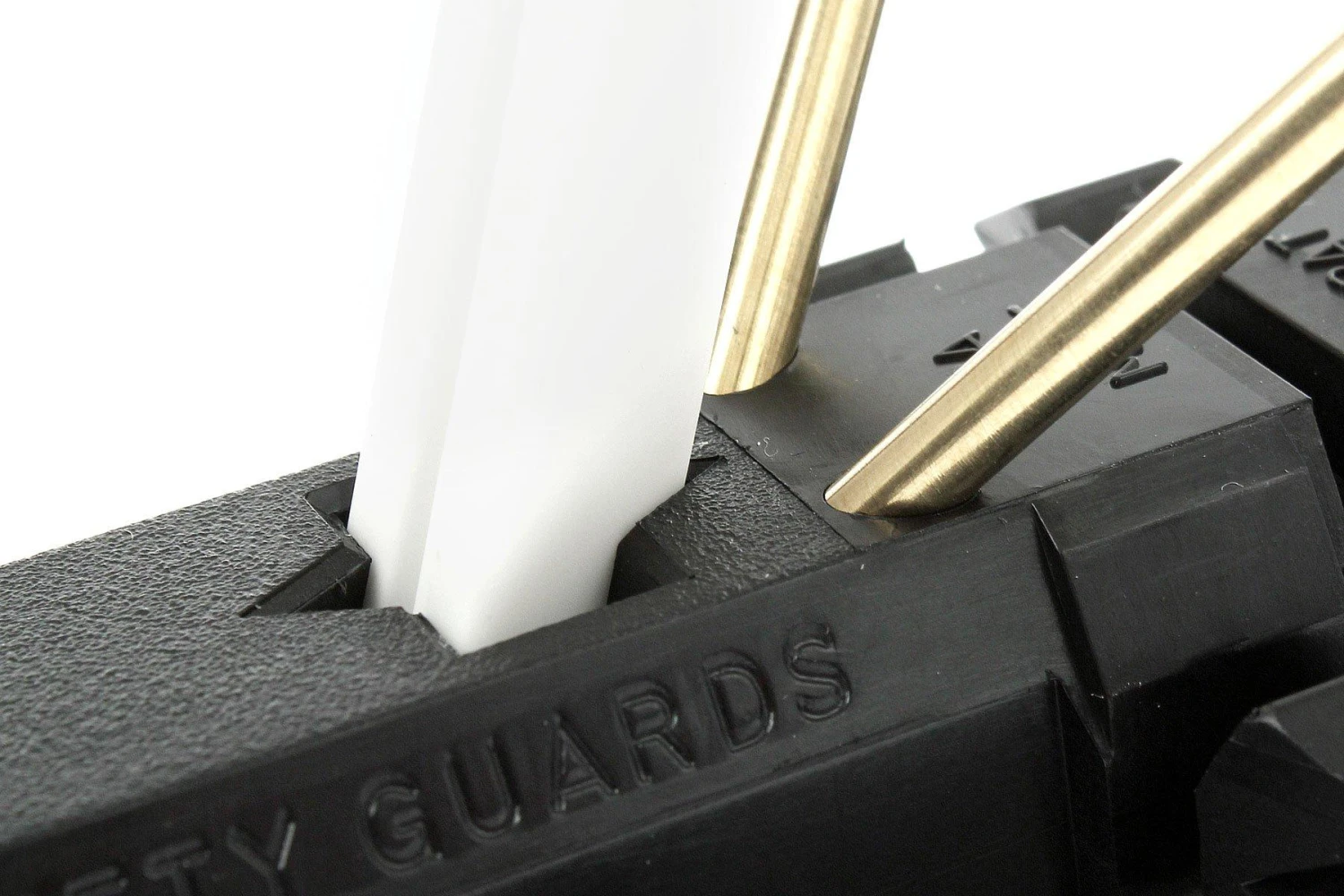 Le Spyderco Sharpmaker est un système d’aiguisage pratique pour aiguiser et garder tous les couteaux aiguisés. Cet appareil convient particulièrement pour les couteaux déjà en bon état. Pour les couteaux très émoussés, nous conseillons les tiges d’aiguisage grossières.